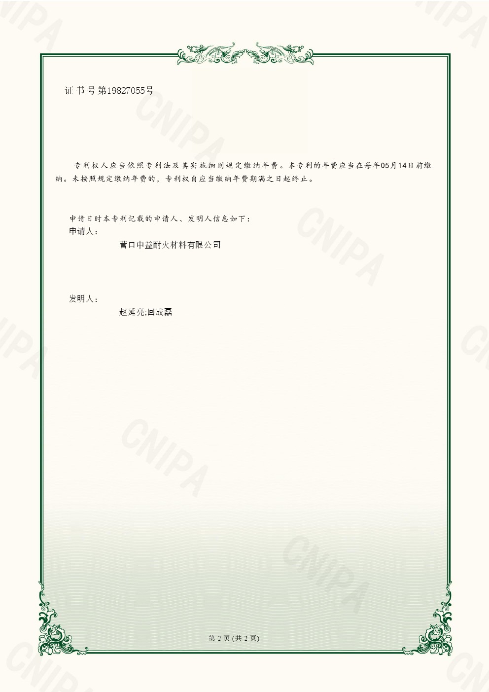 實用新型專利證書一種鎂碳磚擺式骨料磨粉機